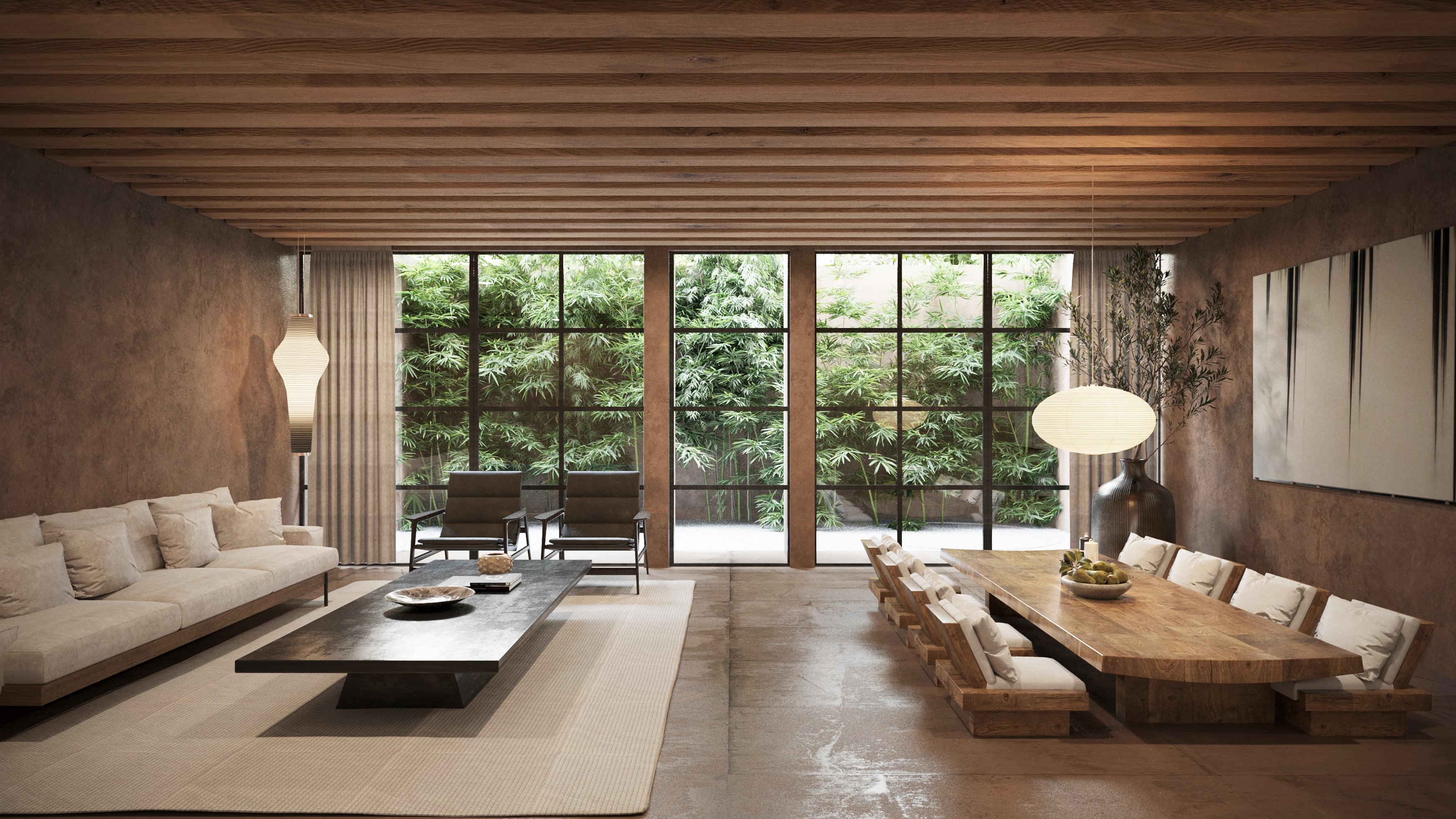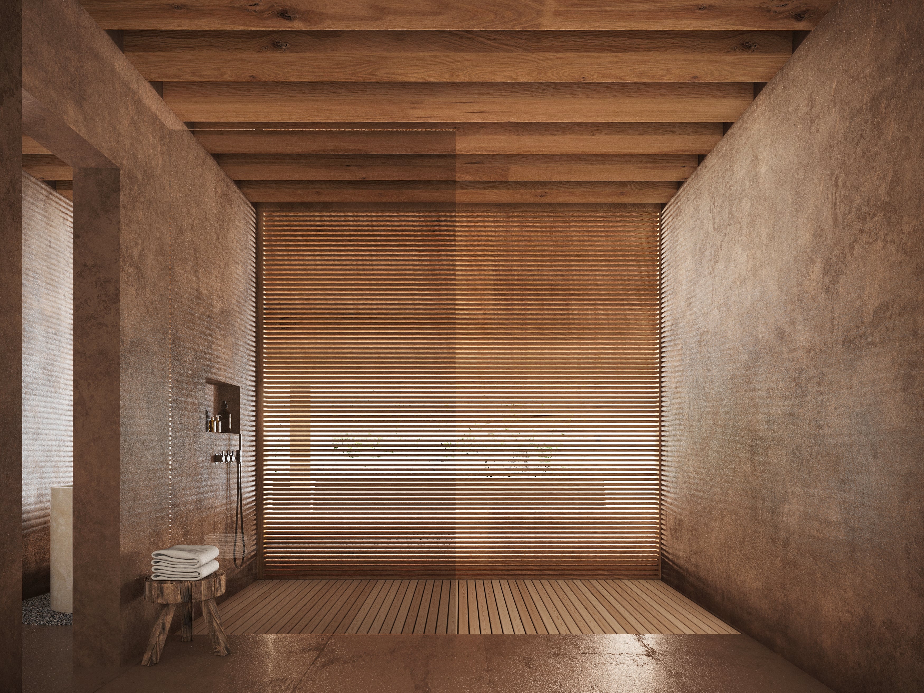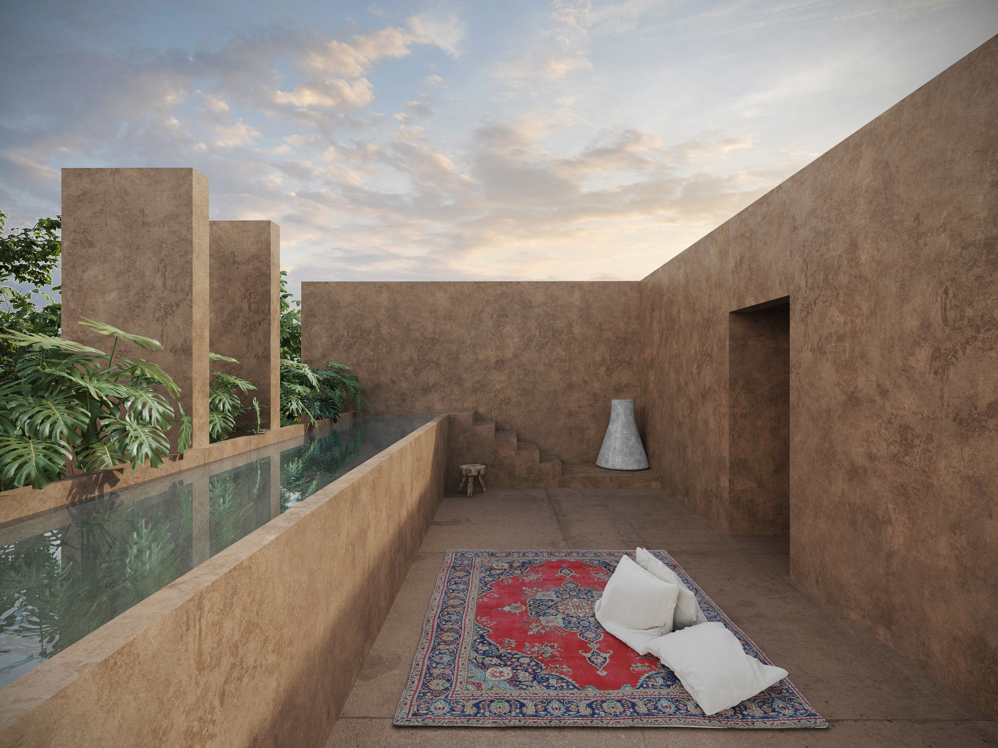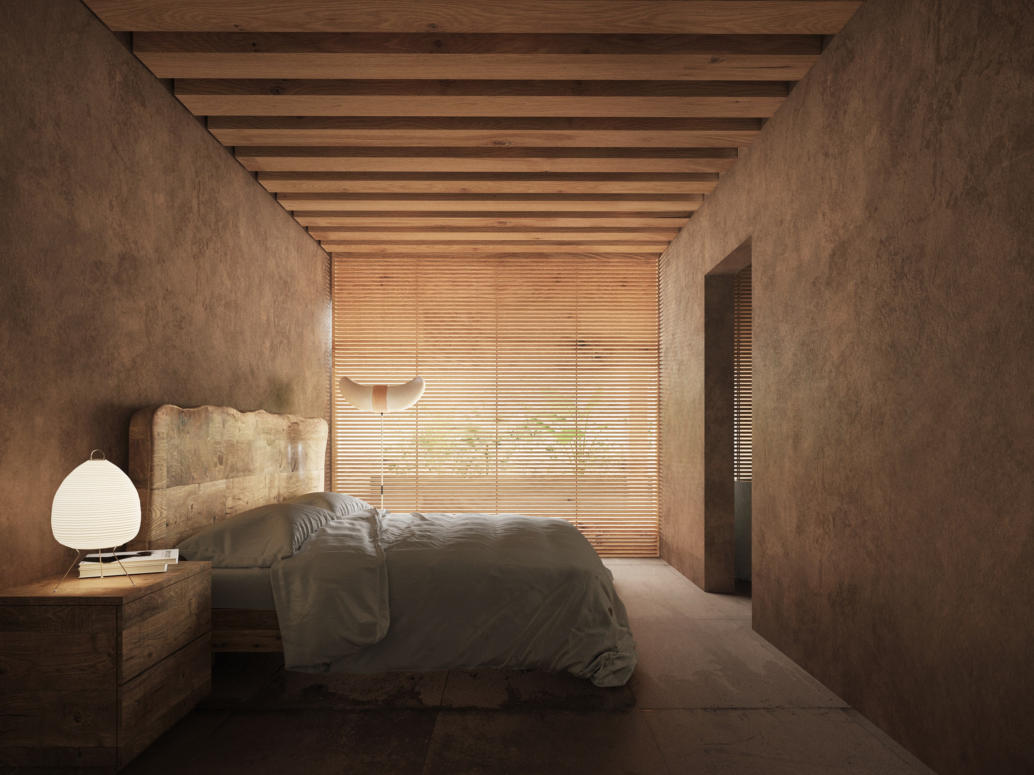 El diseño de Villa S resalta el uso de materiales locales que están profundamente conectados con la identidad y el entorno de Tulum, como la piedra, la madera y la pasta chago en tono mas tierroso. Estos materiales no solo ofrecen una estética elegante y moderna, sino que también aseguran una mayor sostenibilidad y una integración armónica con la naturaleza circundante. La combinación de estos elementos permite que cada vivienda se mantenga fiel al estilo único de la región, mientras optimiza el uso de recursos y tiempos de construcción.