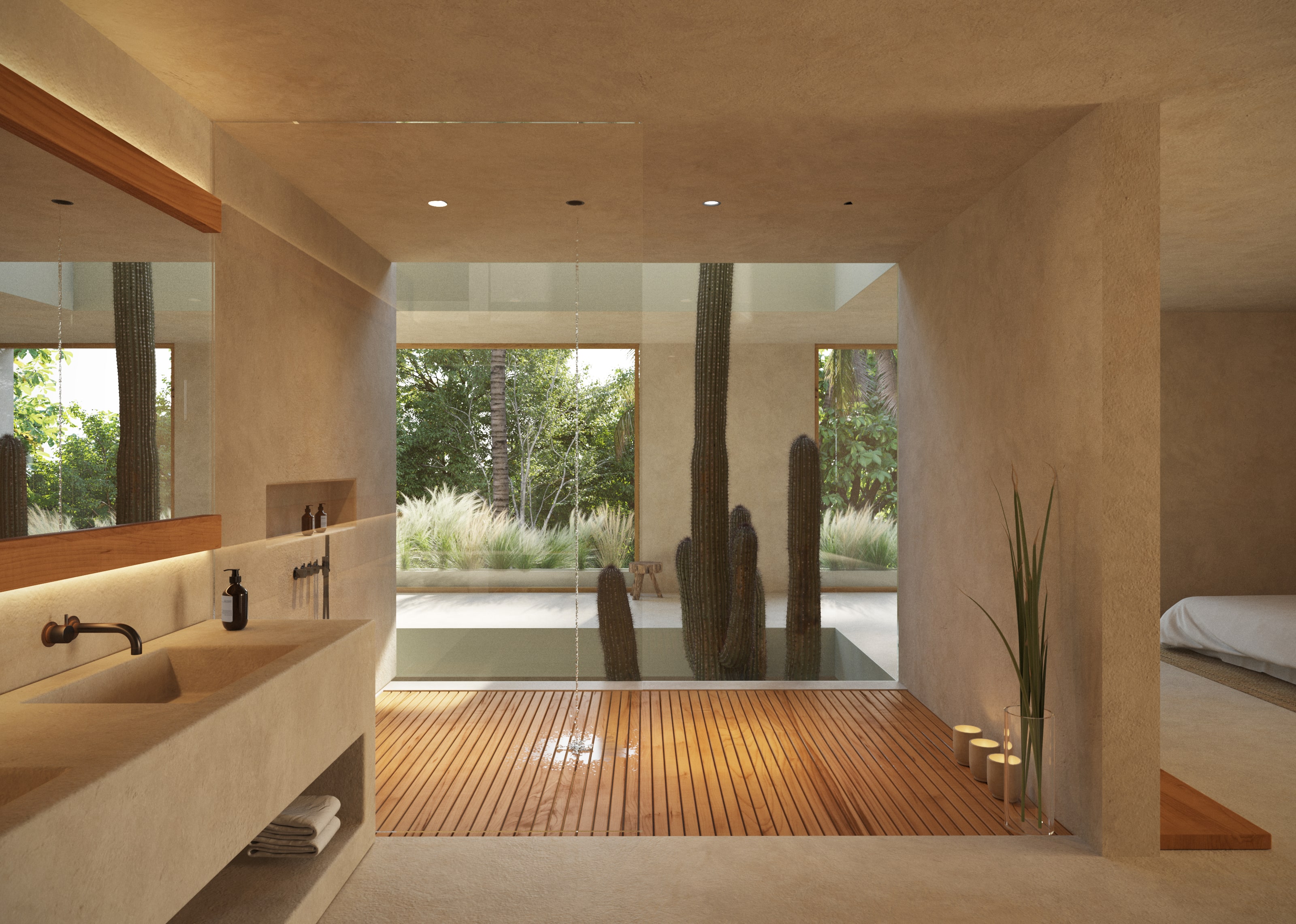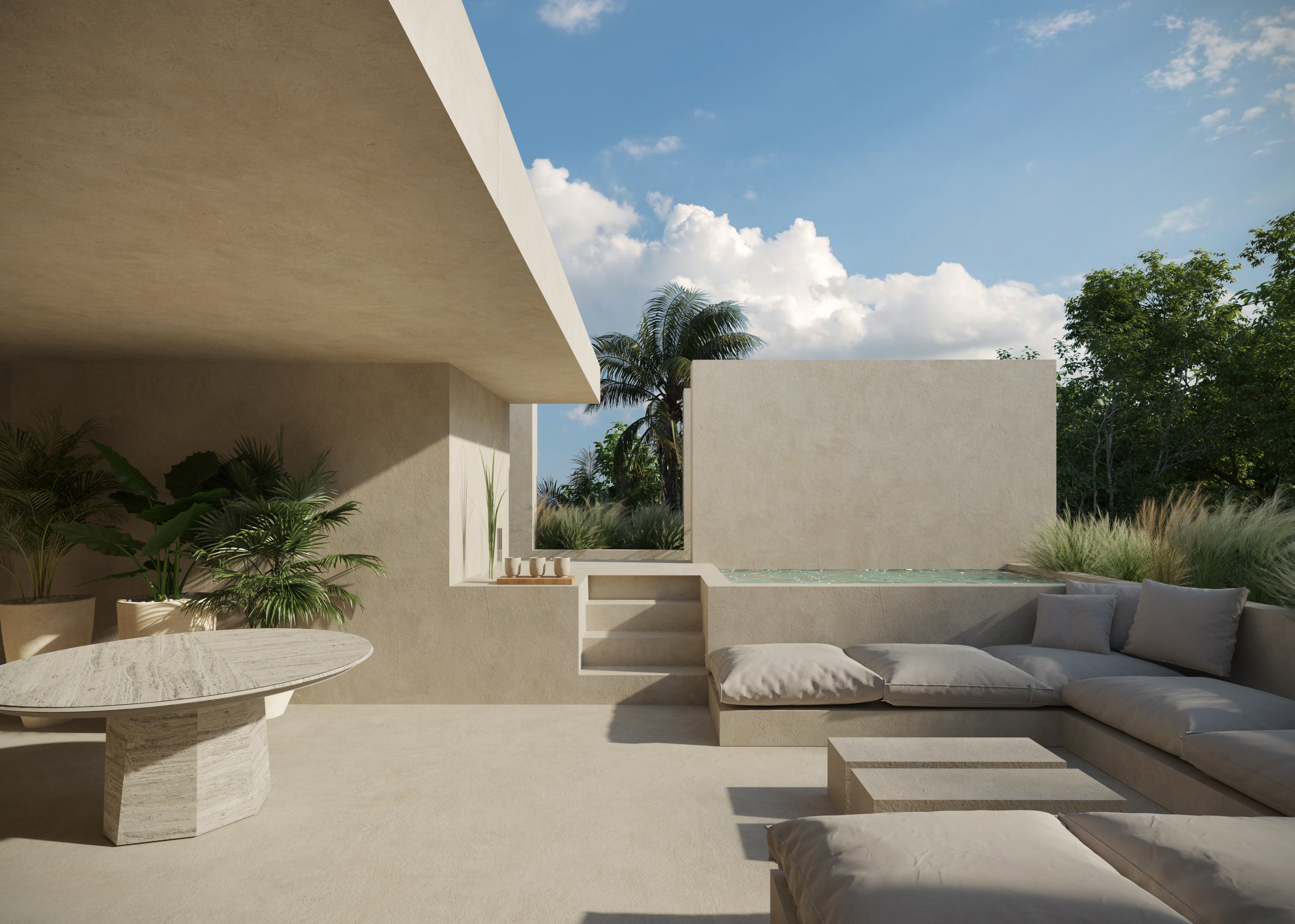 La elección de los materiales locales, como la piedra, el concreto pulido y la madera, junto con elementos de diseño contemporáneo, da como resultado una atmósfera fresca y acogedora, perfecta para disfrutar del clima tropical de Tulum. Villa G no es solo una vivienda, sino una celebración de la vida en Tulum, ofreciendo una experiencia de comodidad, elegancia y total conexión con la naturaleza que rodea el proyecto.