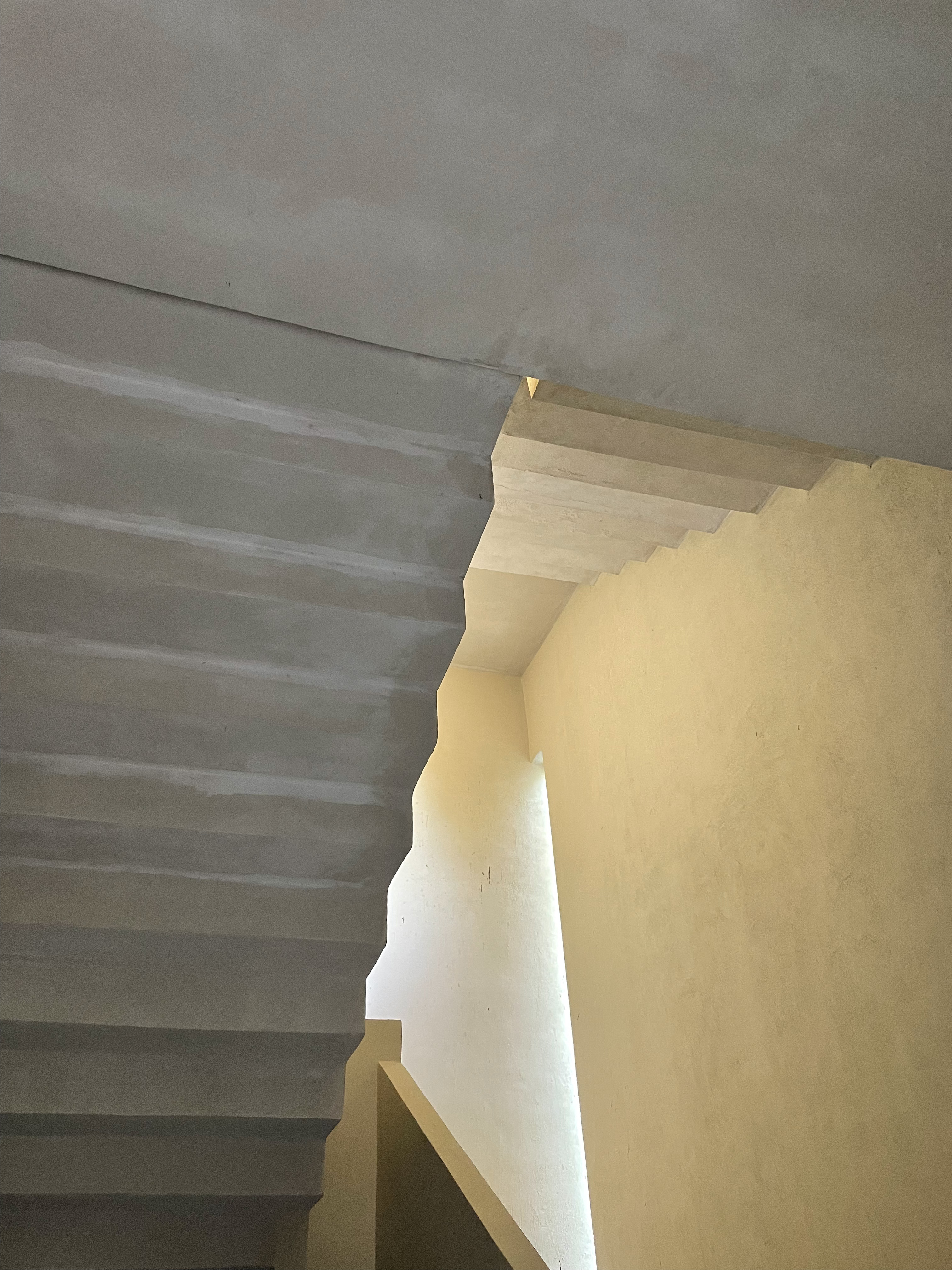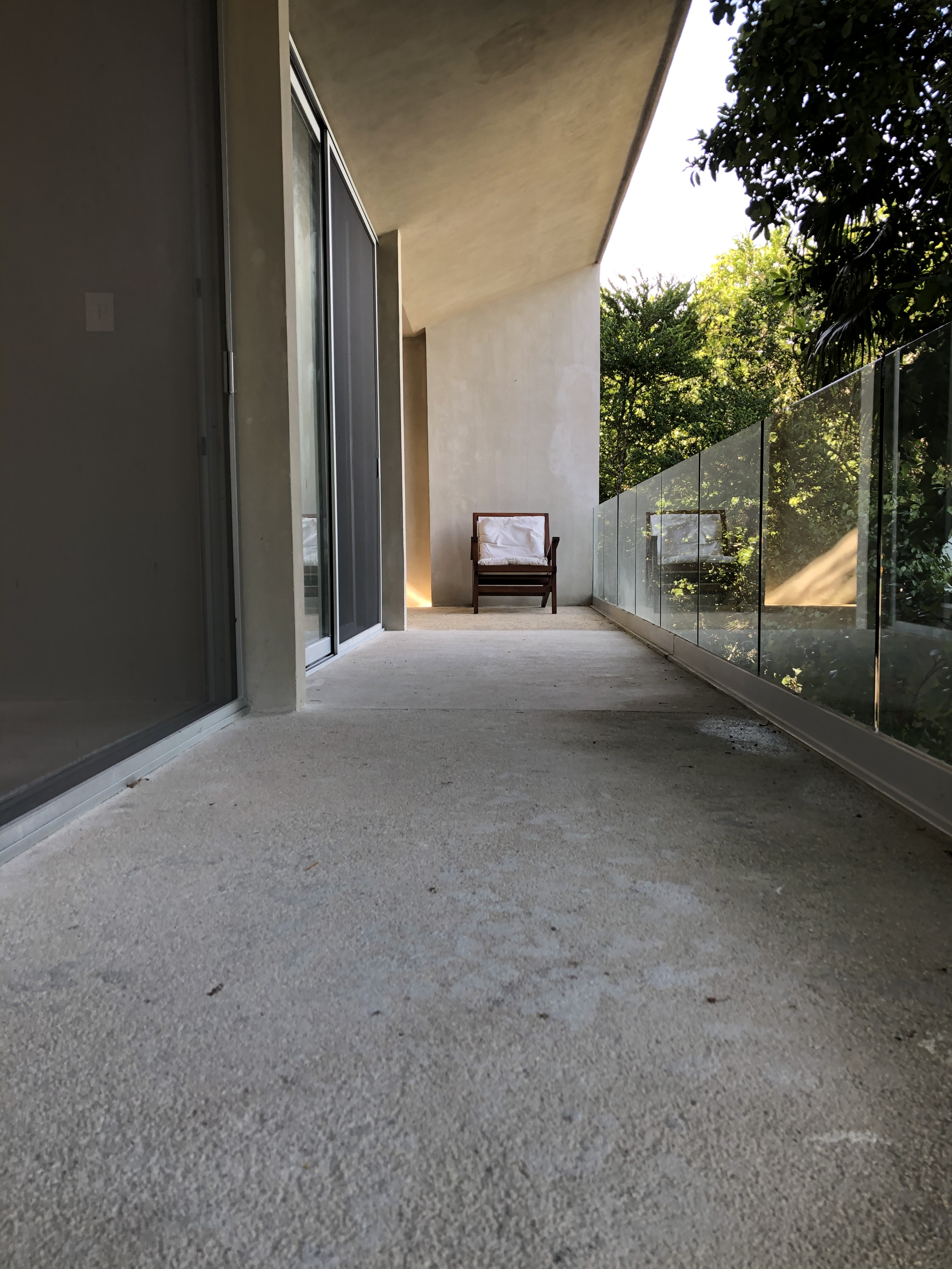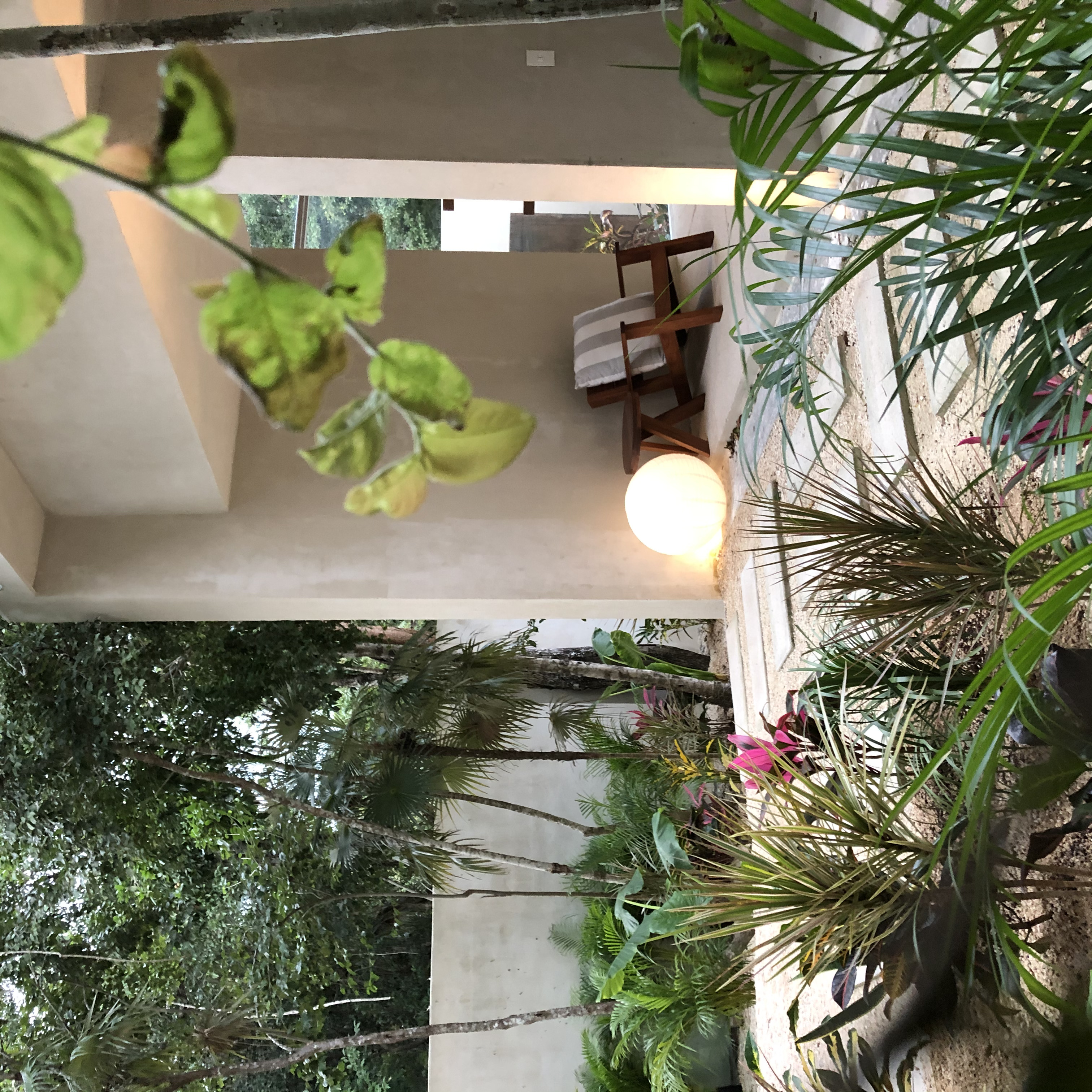 La sombra y el juego de hojas sobre los materiales, crean una intersección entre la naturaleza y el hombre. Anima la superficie del elemento y se convierte en una forma de decoración por derecho propio. El valor de la sombra en un edificio es significativo, ya que define el espacio y le da al ojo un lugar para descansar. La gran calidad de vida se produce cuando el énfasis arquitectónico se equilibra entre el exterior y el interior. La estructura del espacio exterior actúa como una envoltura para el espacio interior. Aún así, ambos deben considerarse de manera integral y ejecutarse como uno.