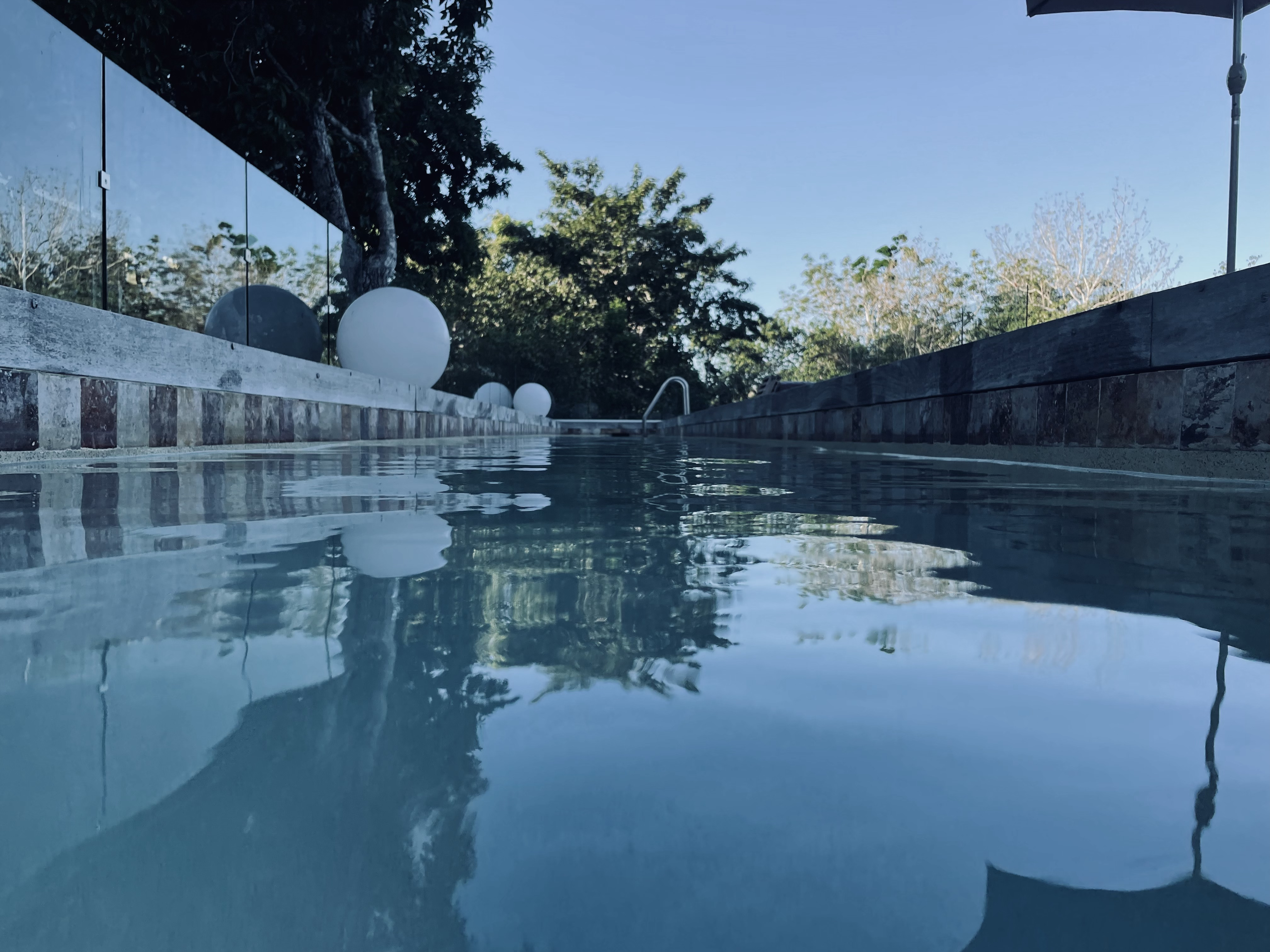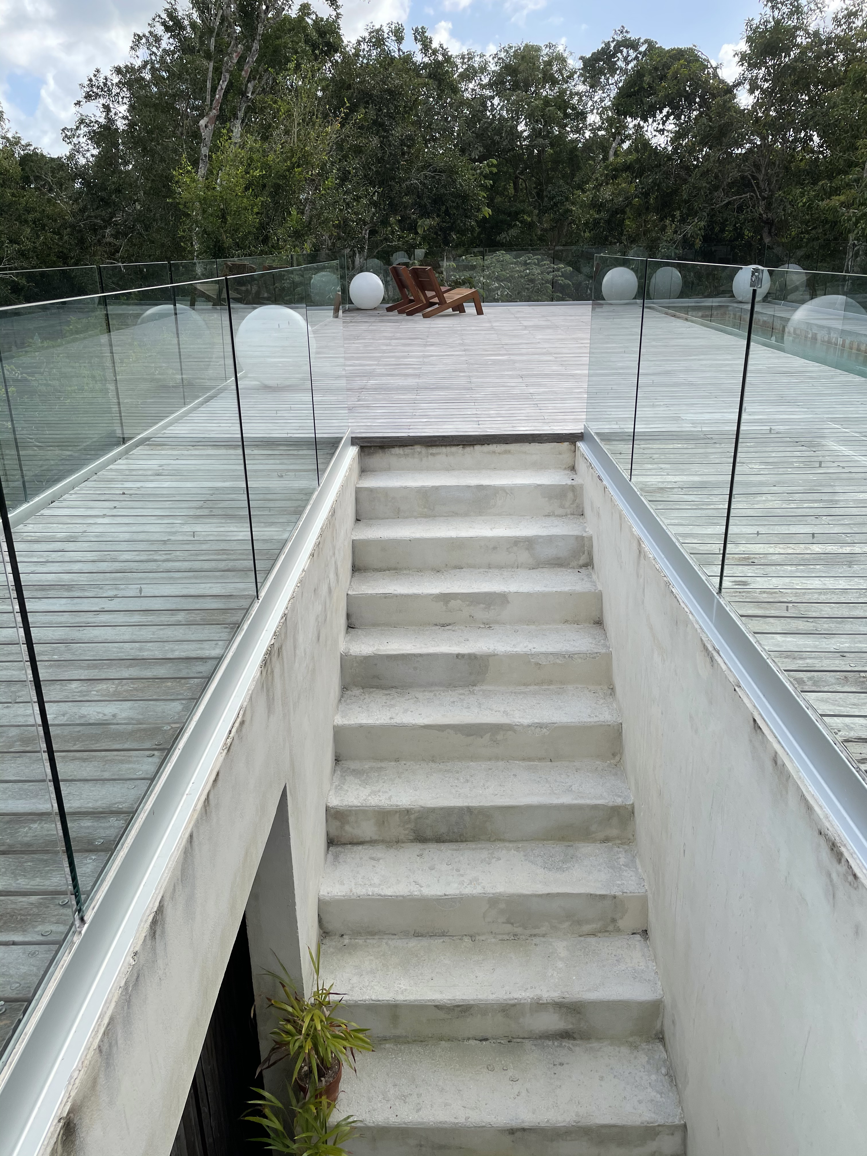 Todos los materiales empleados en el proyecto responden al sitio. Utilizamos madera de Tzalam, masilla o pasta desarrollada específicamente para esta obra con resinas naturales y carrizo o giles. La intervención pragmática consiste en que el elemento se desarrolle como un monolito que la misma selva lo adopte de regreso con el paso de los años. Además, el proyecto es 100% autosuficiente. Generamos nuestra propia energía eléctrica, extraemos agua de pozo la tratamos, la utilizamos, la volvemos a tratar y la regresamos al subsuelo. Todo esto con la finalidad de dejar la menor huella ecológica y estar 100% desconectados de las redes municipales.