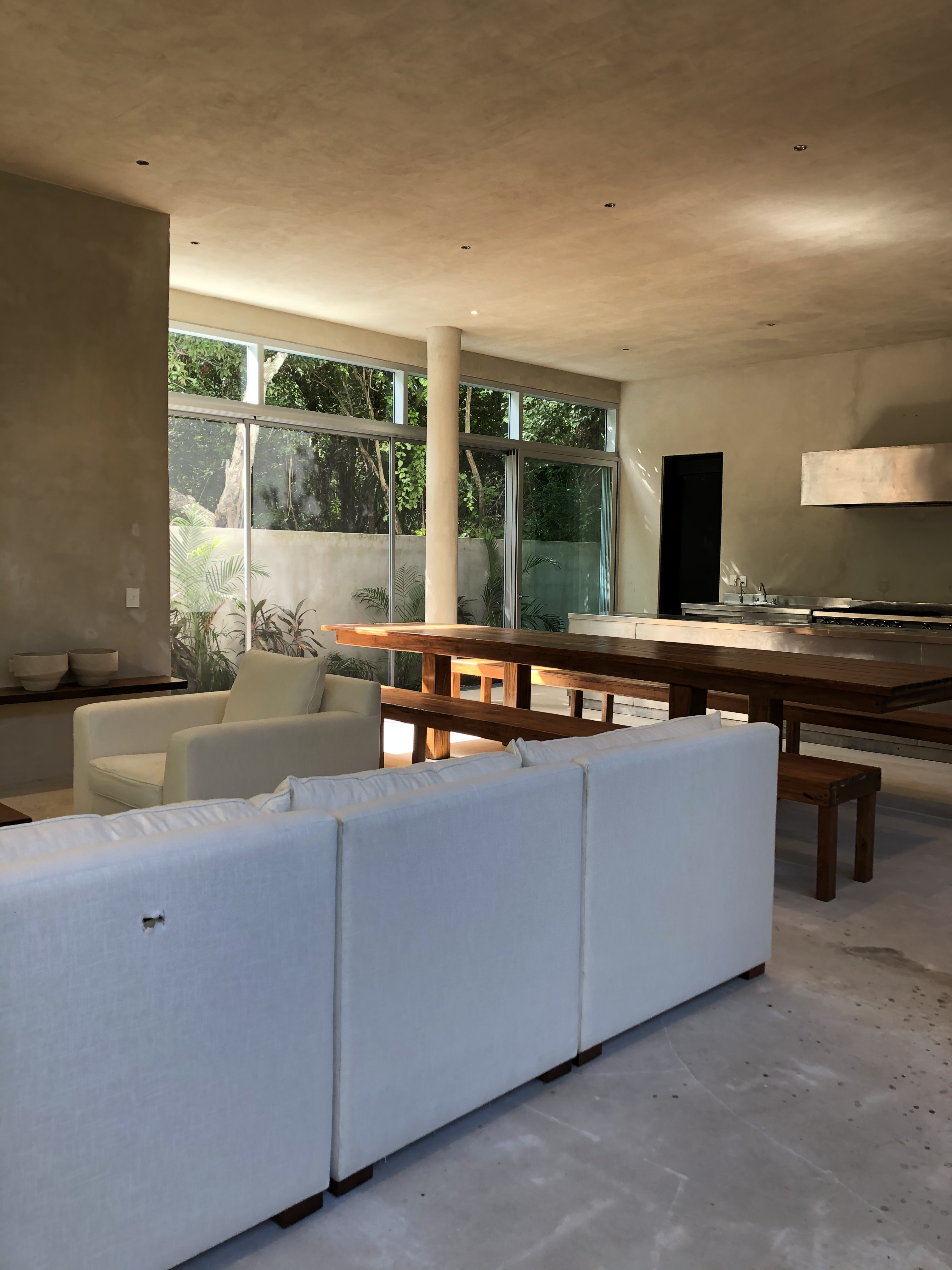 El proyecto está organizado en dos volúmenes principales, en los cuales se divide el programa. En el volumen posterior se desarrollan todas las actividades semi-públicas y privadas. Es decir family room, comedor y cocina en planta baja. Los siguientes dos niveles son habitaciones. Por último, en el volumen delantero, encontramos las actividades públicas, como el shalah de yoga y el asoleadero con alberca.